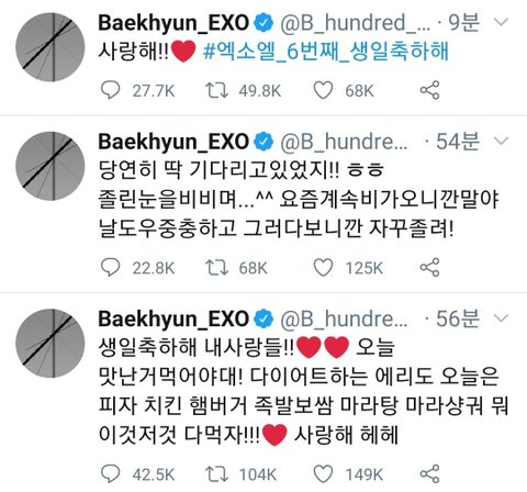 졸린 눈 비비며 12시 기다린 백현이'ㅅ' 정각에 트위터로 축하해줌