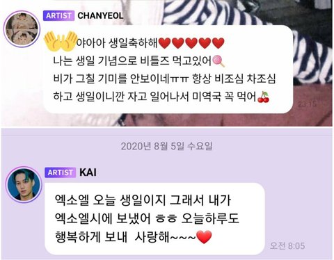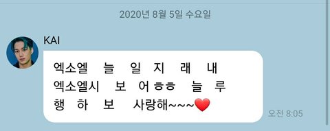엑소엘 생일 8월 5일이라고 오전 8시 5분에 버블 보내준 종인이(ˊσ̴̶̷̤ ₋̮̑ σ̴̶̷̤ˋ)