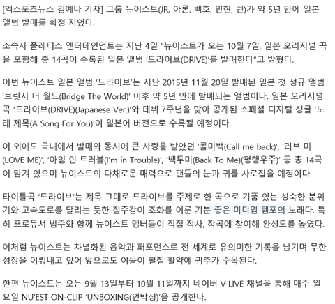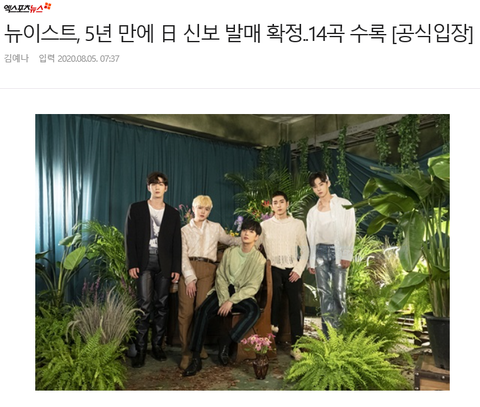 뉴이스트, 5년 만에 日 신보 발매 확정..14곡 수록