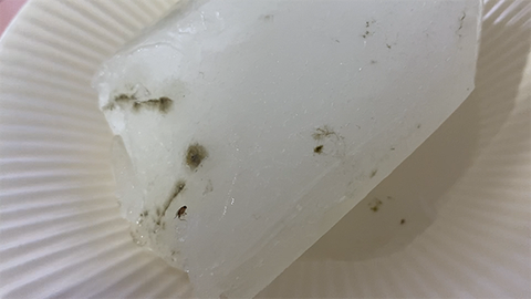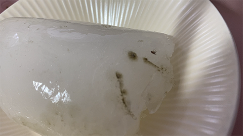 어제 냉동실에 모두 넣어놓고 얼려놓았다가 지금 가위로 윗부분만 잘라 먹으려고 보니 글쎄벌레와 알 수 없는 검은 얼룩이 있더라고요