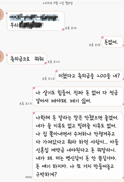 이건 동생네 결혼식 전에 어머니가 돈 부치라고 하는 내용 입니다.