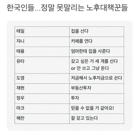 : 저금해서 노후자금으로 쓴다
