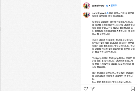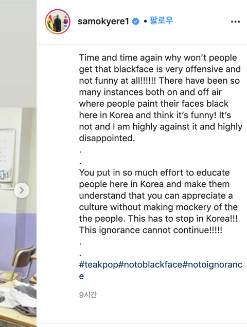 + 샘오취리 방금 애들 사진 내리고 사과문 올렸음. 오취리가 이번일에 과하게 대응한건 사실이고 그건 비판받아 마땅하지만 인종차별이 예민한 주제이니만큼 앞으로 서로서로 조심해야 될것같음.. 그냥 의정부고 애들이 너무 상처받지 않았으면 좋겠음.