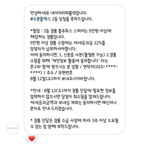 나 네이처리퍼블릭 그거 응모해서 2등 당첨이란 말이야