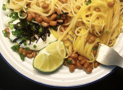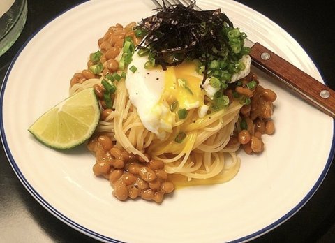 노른자 터트려서 비벼먹는 낫또파스타