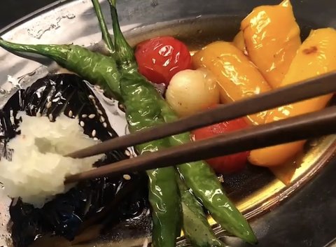 튀긴야채를 바로 차갑게한 소스에 찍어 먹으면♥︎