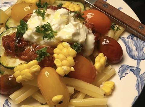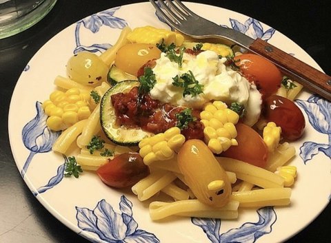 남아있던 소스와 초당옥수수를 넣은 파스타