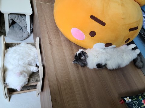이제 다 컸다고 따로 자네요. 자자 하면 아예 캣타워에 자리를 잡기도 해요...