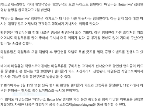 "어제보다 나은 나" 매일유업, 모델 뉴이스트 황민현과 캠페인 영상 촬영