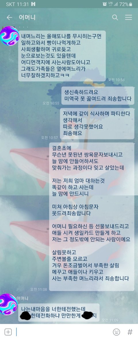 그런데 생신 당일에 아무 문자 안했다고 삐지셔서