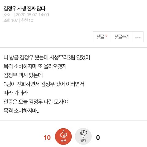 김정우 보살이냐 나같으면 사생들한테 싸다구 한대 갈김