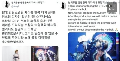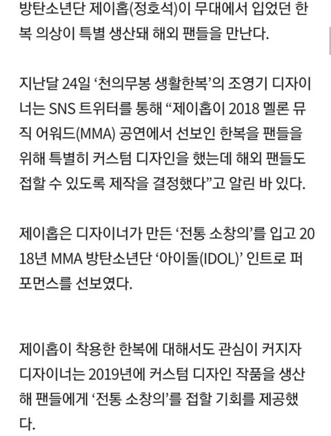 방탄소년단 제이홉, 무대의상 한복 한정판 생산 "한국의 美 알린다