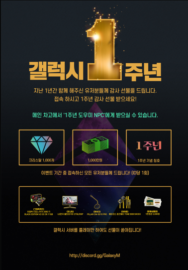 갤럭시 서버에서 적응하기가 힘드실겁니다 그리고 저희 서버에 이 글을 보시고 오시면 저한테