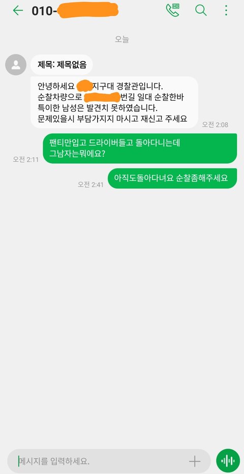 그리고 잠시 뒤 출동했던 것 같은 경찰한테 문자가 왔어.