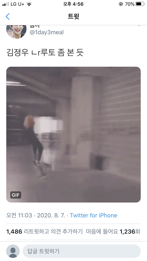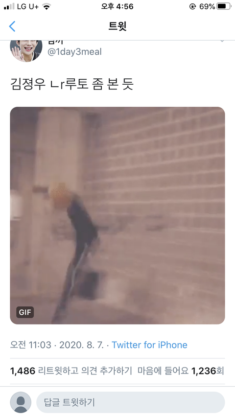 https://twitter.com/1day3meal/status/1291555478997053440?s=21 정우가 뛰어서 벽 발로 찍고 내려오는건데 어디서 ㅈ볼수있어? 개싱기해