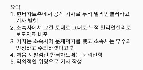 기사 내용 요약한거 봐 처음에 한터에서 공식 기사를 그렇게 내서 그런거야
