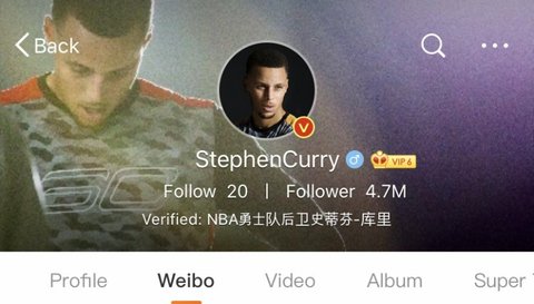 스테판커리 웨이보 팔로잉20명인데 거기안에 천러있대!
