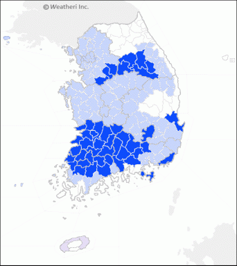 현재 특보 발효지역의 지도입니다. (출처 : 기상청 제공:웨더아이)