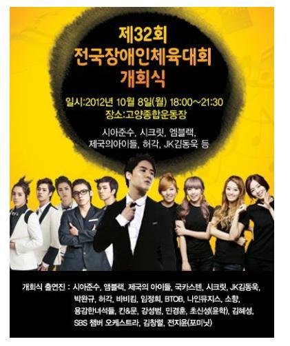 아까 톡선에 있던 댓글 이거.. 이게 SBS 전국 장애인 체육대회 개막식 공연 때 일어난 일인데 이 때가 소송 이후에 시아준수가 처음으로 섭외된 행사였어. 고양시에서 주최하는 장애인 체육대회 개막식 그것도 공개방송 ㅇㅇ