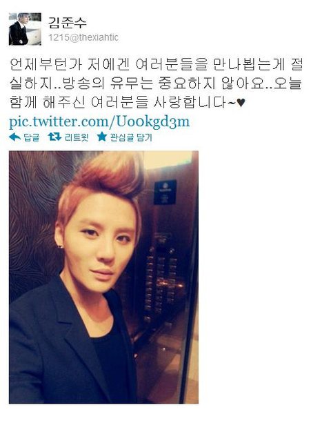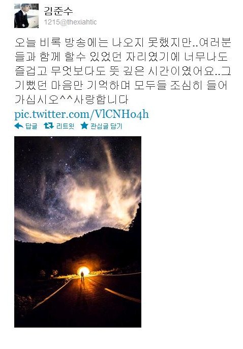 그리고 방송 끝난 후에 올라온 김준수 트위터 ~~
