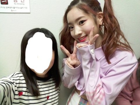 나전에 엠카계단에서 다현이랑 사진찍엇다
