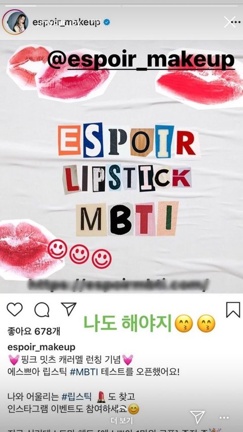 조이가 립스틱 MBTI 테스트 올렸길래 해봤는데 귀엽고 은근 재미씀ㅋㅋㅋ피드나 스토리에 올리면 추첨해서 립스틱준다구해서 고고함ㅋㅋㅋ