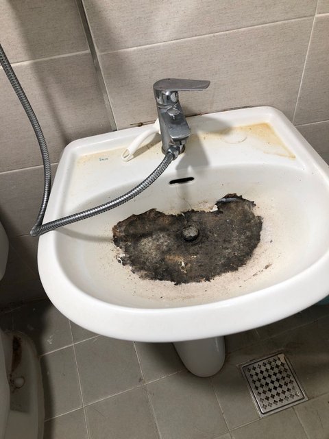 6.1 싱크대가 막혀서 물이 내려가지 않음 6.2 사진과 다른 매우 불결한 청소 상태 (세면대의 절반이 곰팡이 등으로 오염, 바닥 청소 안됨, 기타 더러움) 6.3 집 바로 앞에 뭔지 모를 쓰레기 더미와 건축폐기물 등 혐오환경