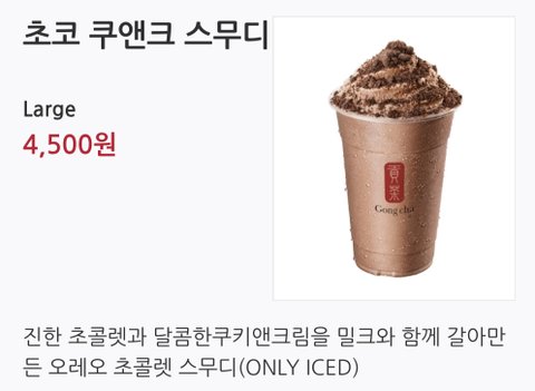 1.첫번째 행사 음료:초코 쿠앤크 스무디/가격:4500원
