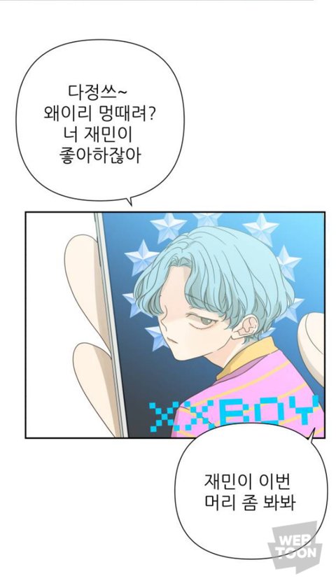 ㄴㅇㅂ웹툰 월욜 웹툰인데.....설마 재민일까...?ㅋㅋ걍 파란머리에다가 재민이길래....