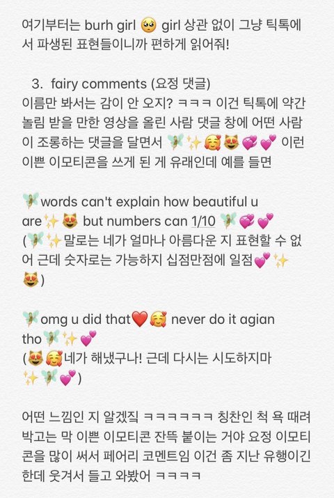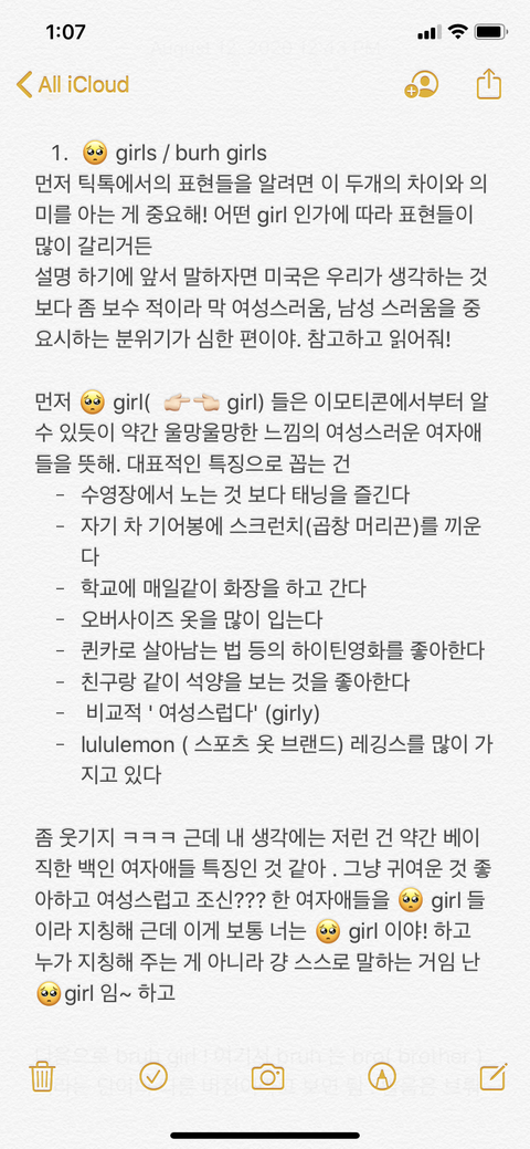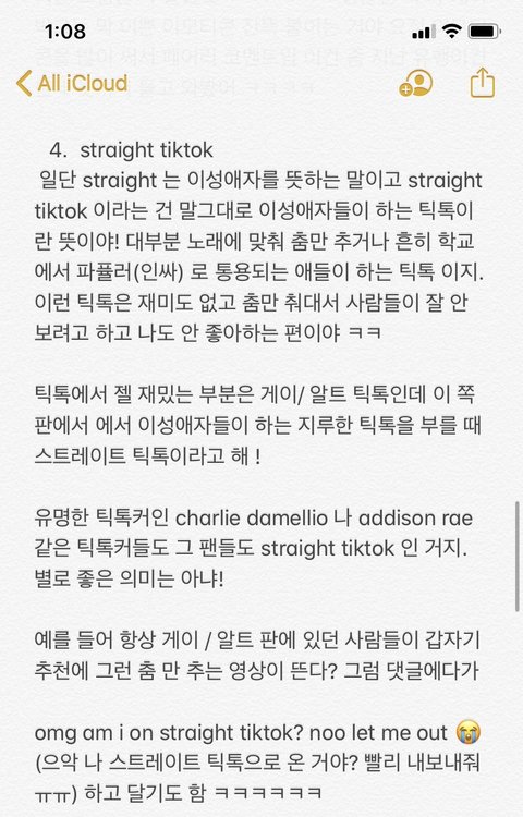 안녕 얘들아!! 다시 2 편으로 돌아왔엉 ㅋㅋㅋ 오는 김에 닉넴도 바꿔봤어.. 미국 고딩 슬랭 알려주는 애.. 미고슬.. 좀 구리지만 작명 센스 없는 날 이해해줘.. ㅋ 어쨌든 오늘 내용은 틱톡!! 문화 야!! 우리나라에서는 틱톡은 좀 유치하고 초딩들이 많이 하는 플랫폼이지만 미국에서는 정말 틴에이져들-20 대들의 집합소라고 해도 과언이 아닐 정도로 그 연령대가 중심으로 돌아가는 것 같아! 그만큼 나도 유학하면서 틱톡으로 문화에 대해 더 자세히 배운 것 같기도 하고.. 그래서 미국애들이 쓰는 표현 중 틱톡에서 파생된 표현들을 알려줄게!!