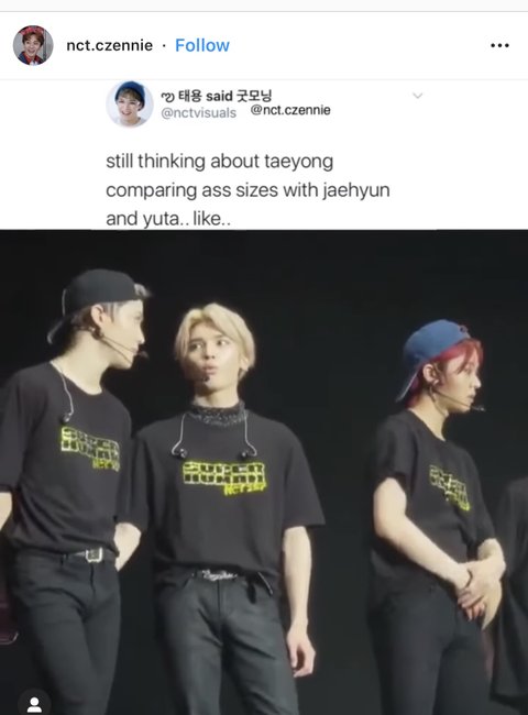 뒷북이먼 미안한데 재현이랑 유타랑 자기 엉덩이 크기 비교하는 태용잌ㅋㅋㅋㅋㅋ 짤은 내가 캡쳐한건데 저 계정 들어가면 볼 수 이써!