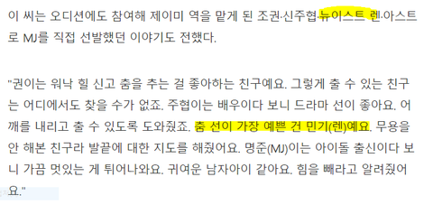 제이미 안무가님 인터뷰중 민기언급부분