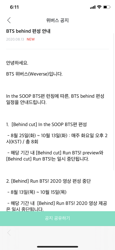 비하인드 관련 (숲 속에서) 공지