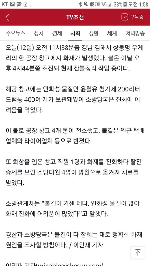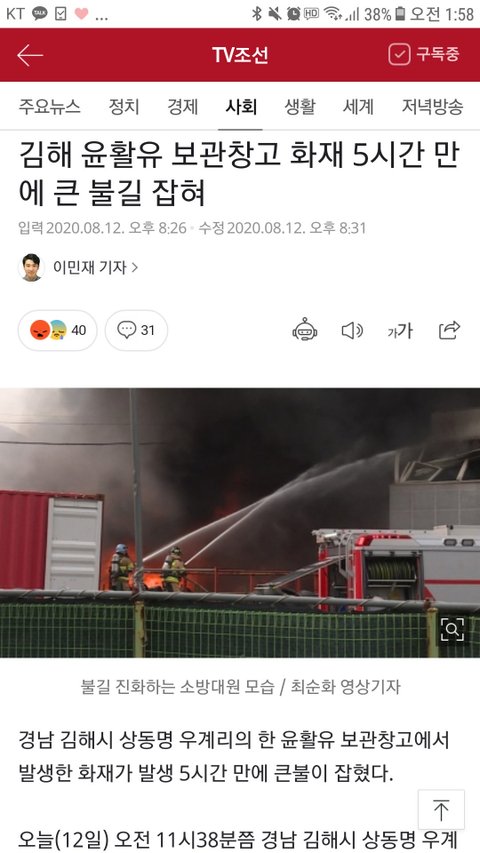 김해에 윤활유 공장에 불이 나서 유독가스들이 경남권에 바람타고 옮겨졌어. 딱 정확히 양산으로 바람을 타고 와서 유독가스가 아파트 창문으로 들어와서 사람들 다 병 걸린 것 처럼 거의 다 숨을 못 쉬고 있대. 나도 지금 속이 너무 메쓰꺼워.