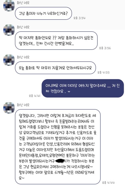 제가 언제 싸우자고 했냐 그냥 애쓰시지말라했을때 연락 안하셨음 됐는데 할부구매가 안될거라느니 현금모아서 사라느니 이런 말을 하시는게 오히려 싸움거는거 아니냐고 하니 자기 영업방식이 그렇다 고객님이 뭔데 자기가 지금까지 해온 영업방식을 이래라저래라 하냐며 화를 내는거예요 .. 그래서 제가 영업을 하는 사람이 고객이 그런식으로 말하는게 기분이 안좋다고 이야기하면 고쳐야하는거 아닌가요? 하니 자기보다 나이도 어린것같은데 하시길래 여기서 나이가 무슨 상관이냐 따져물었습니다. 그러더니 나한테 고객님이 신용도도 없고(신용카드를 사용하고 있지않고 사대보험 들은지 1개월 차라 신용등급이 없는 상태..) 현금으로 못사니까 일부러 기분나쁘게 들은거 아니냐며 화를 내서 더이상 말도 안통할 것 같아서 끊어버렸고 끊고 너무 기분이 나빠서 해당업체 페이스북 페이지에 리뷰를 올렸더니 몇시간 뒤 처음 상담받았던 직원분에게 무슨일이냐며 연락이 왔습니다.