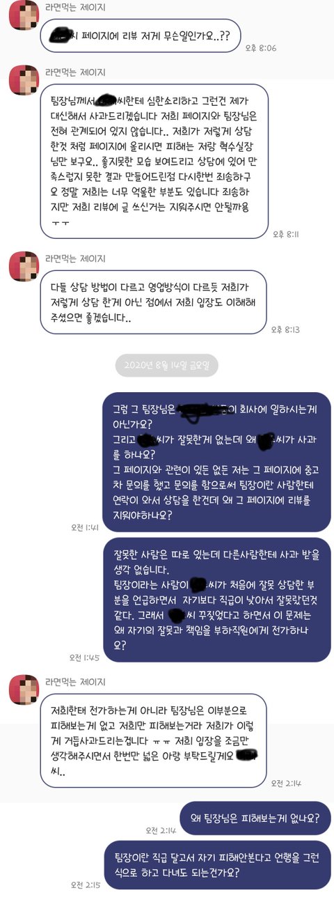 대신 사과드린다며 하셔서 잘못한 사람은 따로 있는데 왜 다른사람이 사과하시냐고 사과 안받는다 했더니 페이스북 페이지 리뷰 글을 삭제해달라고 하셔서 그럼 그 직원에 대한 컴플레인은 회사대표번호로 걸면 되냐하니 갑자기 태도급변. 영업손해로 법적으로 책임을 묻는다고 하면서 협박.. 내 개인정보를 남에게 준 것도 모자라 영업손해로 저를 신고한다합니다.