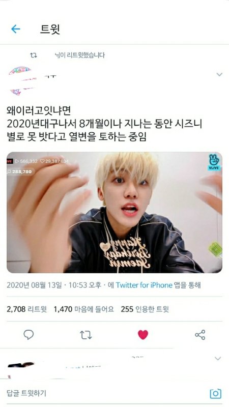 어제 브얩도 뭔가 웃겼음 ㅋㅋㅋㅋㅋㅋ 아 놔 금발 진짜 개잘어울ㄹ려 개인적으로 핑머 파머보다 잘 어울린다고 생각함 아 진짜 개존잘 아니 재민이 갑자기 대노할 때 있는데 좀 웃김