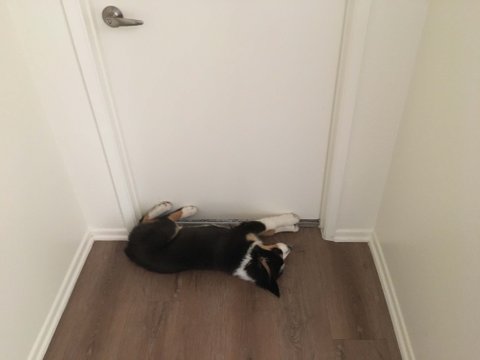 아빠가 볼일보는 화장실 앞에서 기다리며 잠까지 자는군요.