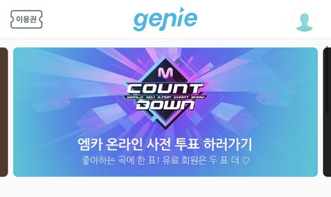 1. 지니 앱 상단 17일전까지 엠카 사전투표하기