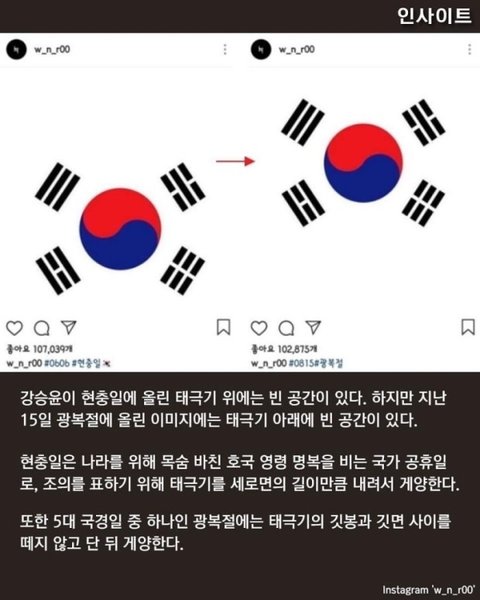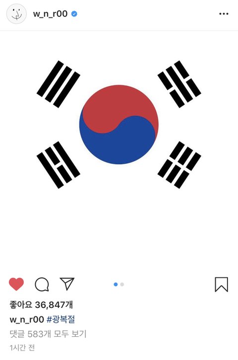 인스타 계정 만든 후로 꾸준히 삼일절, 개천절, 광복절, 현충일 모두 게양법 지켜가며 글 올리는 중.. 울 위너리더ㅔ 진짜 멋있다ㅠㅠ