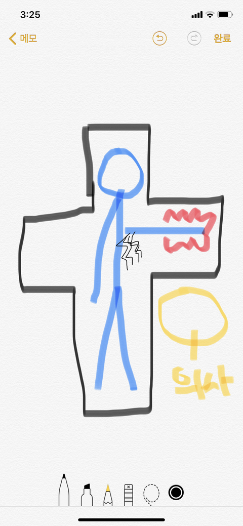 엊그제 새벽에 손목을 칼에 다쳤음. 심각한줄 모르고 있다가 손이 잘 안움직여지길래 다음날 아침(어제) 응급실에 감. 여러가지 검사를 엄청하더니 인대가 끊어졌다고함. 입원수속하고 좀 대기하다가 수술실에 침대에 누운채로 들어감. 수술실은 추웠고 수술대 위에 옮겨짐. 겨털을 제모할 새도 없었음. 팔이 숭숭 뚫린 수술복을 입고 팔을 수술대 위에 90도로 옆으로 뻗음. 수면마취를 하기로 했는데 수면마취는 안해주고 초음파??를 한다는데 남자 의사가 와서 내 겨털에 젤을 바르고 겨털을 문지르면서 초음파를함. 그리고 내 겨털 사이에 겨드랑이 한가운데 마취주사를 놓음. 난 겨털 숱도 많다고!!!! 제모 안한지 한참되서 개길고 곱슬이었음. 진짜 내 인생 최대 고통이었는데 민망해서 안느껴짐. 팔이 저리는듯하면서 팔 전체가 안움직여지고 마취가 됨. 호흡기를 씌워주더니 링거에 수면마취 액이 들어가더니 난 그대로 기절. 깨보니 노란 동그라미 자리에 의사가 앉아서 꿰맨 팔과 손목을 드레싱 중이었음. 내 겨털은 그대로 노출된 채로!! 수술이 1시간 정도였는데 남자의사가 수술 내내 내 겨털을 보면서 수술한거임. 다행히 수면마취 헛소리는 안하고 다시 침대에 눕혀서 옮겨짐. 겨털에 주사맞은 썰 끝. 드러워서 ㅈㅅ.