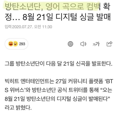 알엠피셜 8월 21일에 나오는 방탄노래는 bts노래가 아님