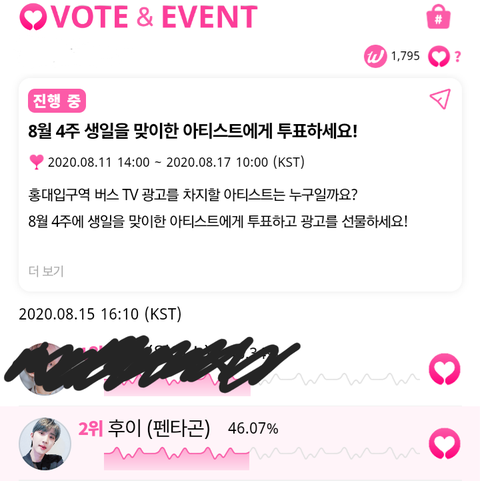 후즈앱에서 생일 광고 투표하는데 계속 엎치락 뒤치락임 지금 ㅠㅠ 투표좀 해조 제발 ㅠㅠㅠㅠㅠㅠㅠㅠㅠㅠㅠㅠ
