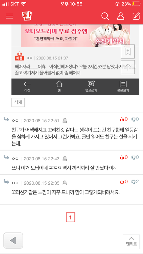 근데 오늘 그 술자리때문에 친구와도 어색해지고