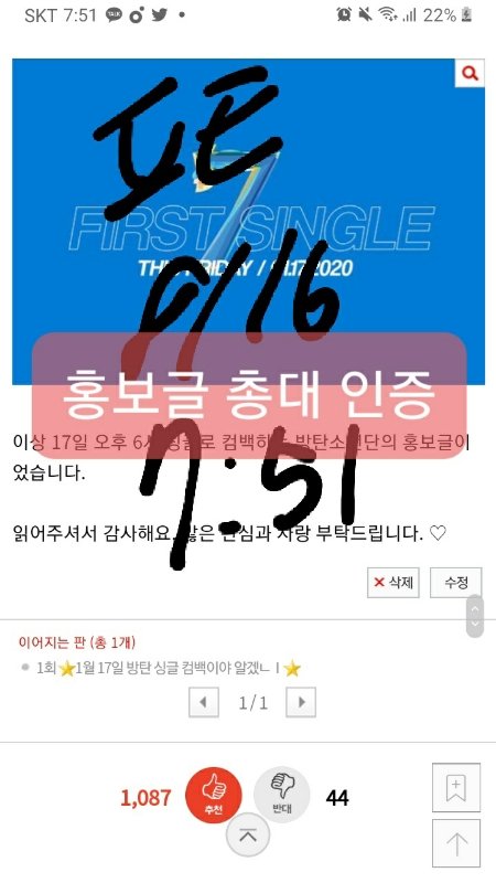 *팬인증 댓 확인
