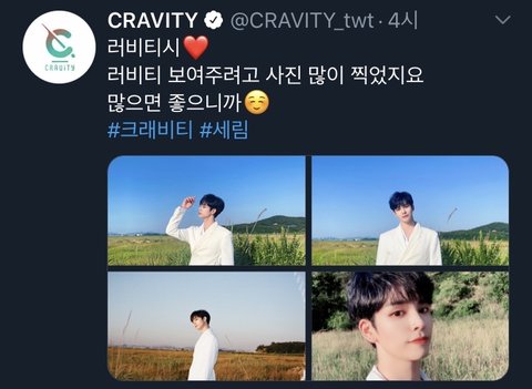 크래비티 세림인데 오늘만 3번 옴 그것도 셀카 4장씩 꽉꽉 채워서... 진짜 효자 + 공카 또 옴 ㄷㄷ