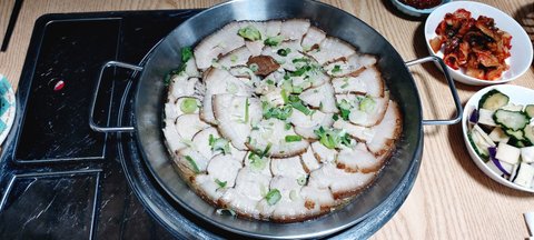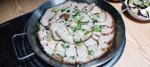함께 푸드 워머...? 는 없지만 고기식탁에서 약불로 살랑 살랑 데우면 됩니다