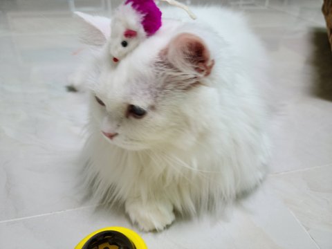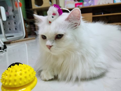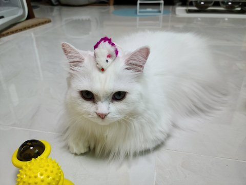 울 두부 움직이기도 귀찮은가봐요...머리에 장난감을 올려놔도...