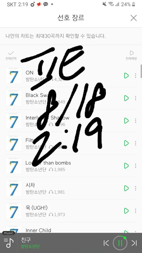 본인이 쓰는 음싸 눌러보고 방탄소년단 프로필 중에 곡 카테고리로 들어가지는지 봐주면 돼 !
