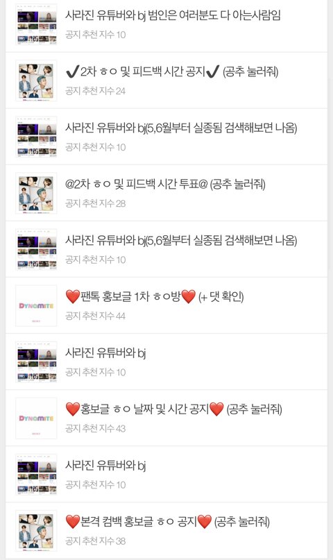 지난컴백 공지회의글 1개 근데 이번엔? 계속 글미는이유